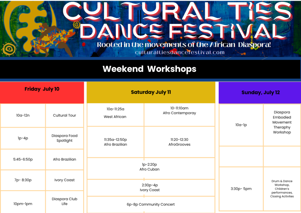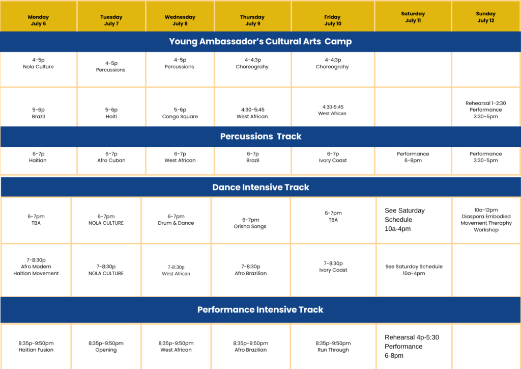 | Youth Cultural Arts Schedule | Dance Intensive | Drum Intensive | Weekend Schedule |